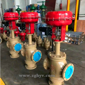 氣動(dòng)三通調(diào)節(jié)閥,是由多彈簧氣動(dòng)薄膜執(zhí)行機(jī)構(gòu)和采用圓筒型薄壁窗口形閥芯的三通合流(分流)閥組成。具有結(jié)構(gòu)簡(jiǎn)單、重量輕、動(dòng)作靈敏、流量特性精確,配用電-氣閥門定位或氣動(dòng)閥門定位器,可實(shí)現(xiàn)對(duì)工藝管路流體介質(zhì)的自動(dòng)調(diào)節(jié)控制,氣動(dòng)三通調(diào)節(jié)閥廣泛應(yīng)用于精確控氣體、液體、蒸汽等介質(zhì)的工藝參數(shù)如壓力、流量、溫度、液位等參數(shù)保持在給定值。適合于把一種流體通過三通閥分成二路流出或把兩種流體經(jīng)三通閥合并成一種流體的工況。